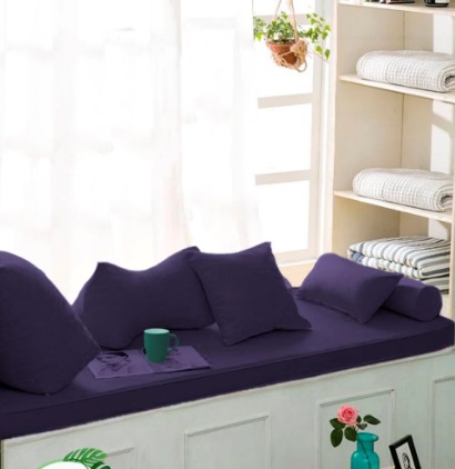 Это отличное решение для большого подоконника, который вы используете как простую подставку для цветов. Такое место для отдыха может разнообразить интерьер, украсить комнату. Разноцветные подушки смотрятся очень оригинально и интересно. Вы можете выбрать ткань с интересной фактурой, а если вы используете такое изделие на улице, то вам пригодится материал, которому не страшны изменения погоды, дождь, снег.